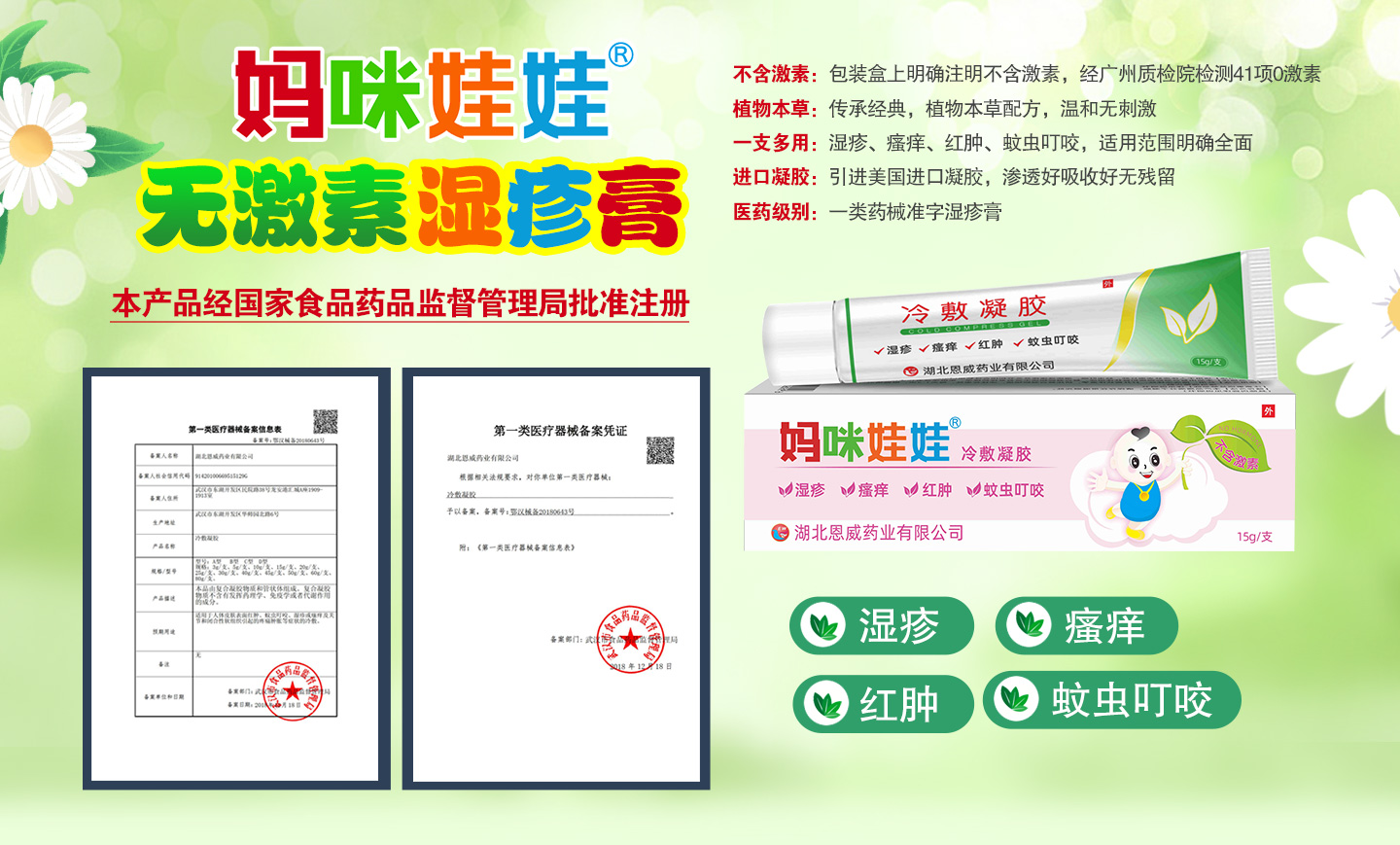 湖北恩威藥業(yè)是領先創(chuàng)新驅動型母嬰醫(yī)藥生產(chǎn)企業(yè),在占地150000平方米的東湖高新技術產(chǎn)業(yè)園,聯(lián)合武漢大學、同濟醫(yī)科大學共同組建了研發(fā)基地,引進國外全自動生產(chǎn)線,GMP國家標準全無菌生產(chǎn)車間,產(chǎn)品先后通過了ISO9001、ISO14001國際管理體系認證,多款產(chǎn)品經(jīng)過臨床驗證療效顯著。公司主營寶寶蚊蟲叮咬濕疹膏、兒童功能性營養(yǎng)食品:益生菌、山楂雞內金,及系列小兒外用貼,調理發(fā)燒、腹瀉、感冒、咳嗽、脾胃、上火、積食、便秘、蚊蟲叮咬、濕疹等常見問題。