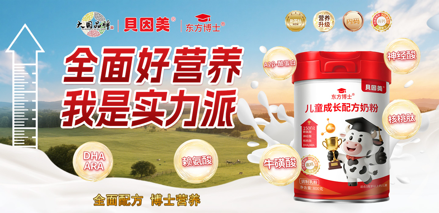 核心品牌,榮耀上市,貝因美東方冠兒童成長配方奶粉強勢來襲,根據(jù)成長特點及營養(yǎng)需求,參照中國食品安全國家標(biāo)準(zhǔn)特別研制,甄選優(yōu)質(zhì)奶源,應(yīng)用先進生產(chǎn)設(shè)備和工藝完成制作,奶粉顆粒更飽滿細膩,更易于溶解。添加初乳堿性蛋白、免疫球蛋白、乳鐵蛋白、水解蛋黃粉、磷脂酰絲氨酸、DHA、高鈣、牛磺酸、益生菌等,富含鈣鐵鋅等礦物質(zhì)及多種維生素,為健康成長加油。