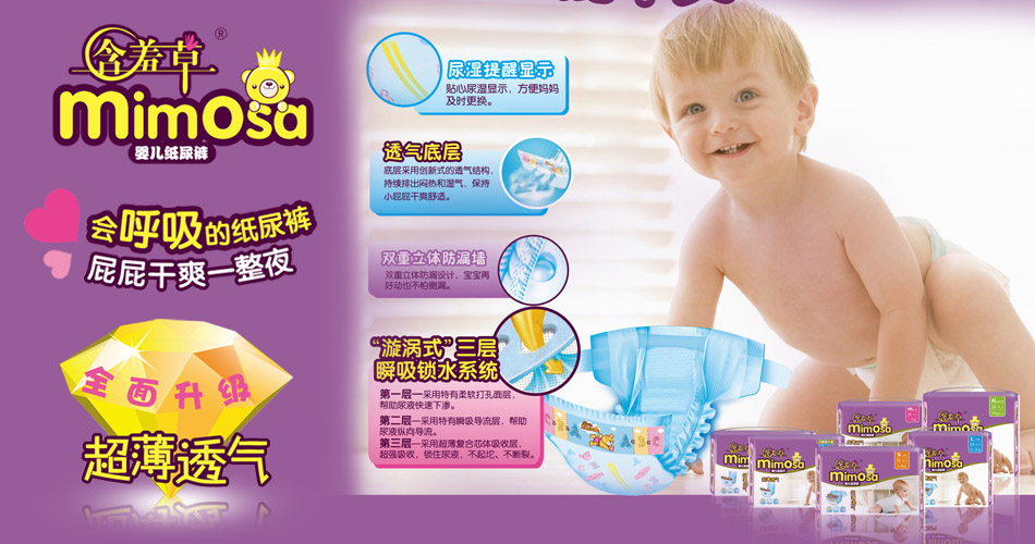 品牌名稱:含羞草 主營產(chǎn)品:含羞草嬰幼紙尿褲招商 品牌特色:安全 溫和 無刺激