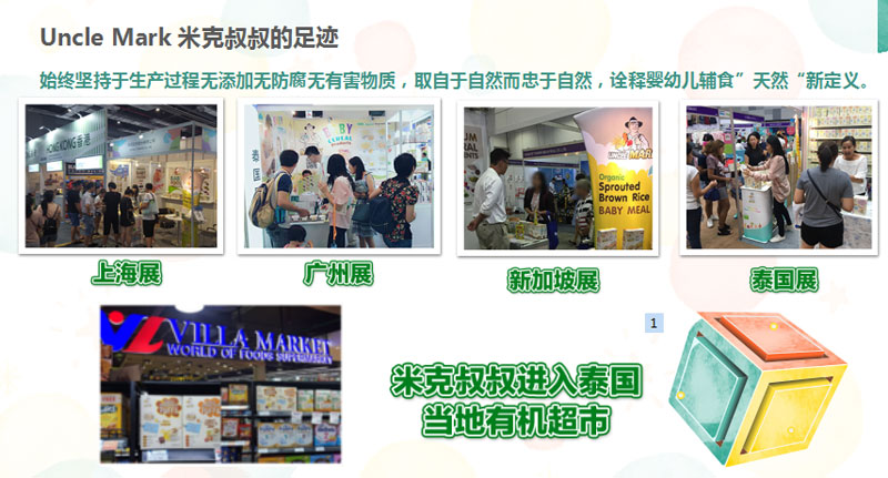 品牌名稱:米克叔叔 主營產(chǎn)品:米克叔叔輔食,米克叔叔糙米粉,米克叔叔零食 品牌特色:工藝獨(dú)特,營養(yǎng)均衡