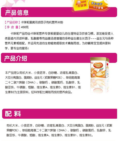 卡咪呢金胚麥芽蛋黃雙歧因子有機(jī)營養(yǎng)米粉