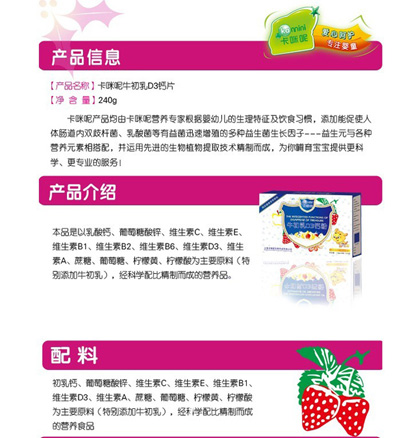 蛋白質(zhì)是人體重要營養(yǎng)素,也是多的營養(yǎng)素之一,是一切生命的物質(zhì)基礎(chǔ),可以保證機(jī)體的生長、發(fā)育、繁殖、遺傳及修補(bǔ)損傷的組織。上?ㄟ淠啬笅胗闷酚邢薰臼菍I(yè)的母嬰營養(yǎng)品企業(yè),針對中國孕嬰童體質(zhì)推出了卡咪呢蛋白質(zhì)粉系列產(chǎn)品,現(xiàn)面向全國招商。