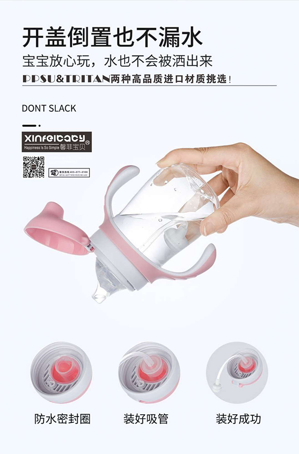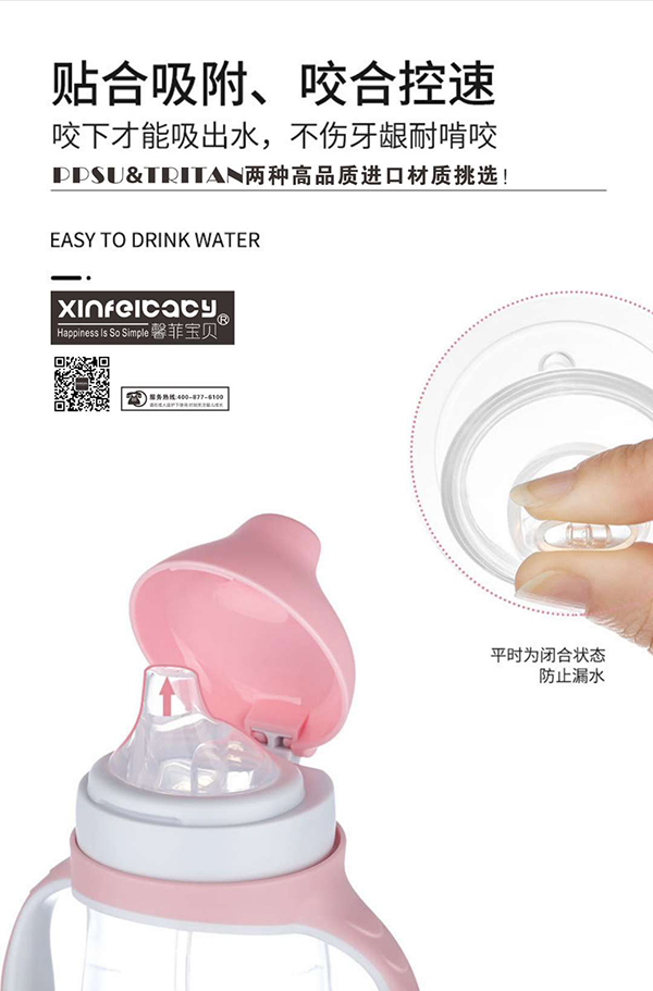 馨菲寶貝防噴防漏鴨嘴學(xué)飲杯,有Tritan、PPSU兩種高品質(zhì)進(jìn)口材質(zhì)挑選,均有抗摔杯體、環(huán)保無味、不含BPA的特點(diǎn),健康安全;