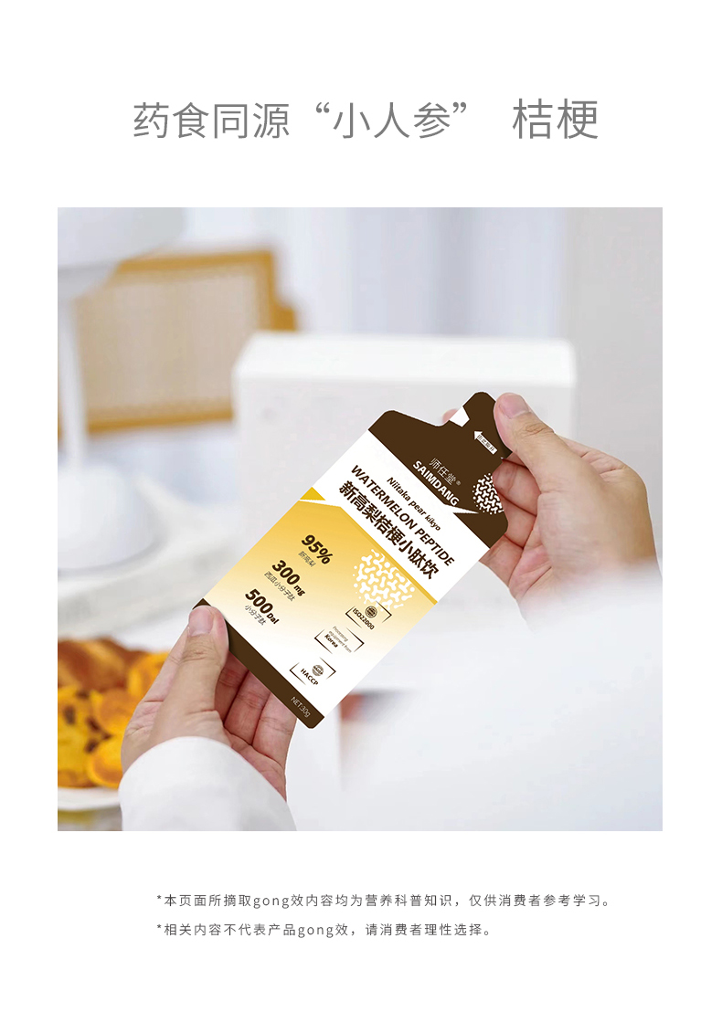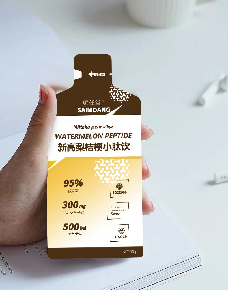 師任堂新高梨桔梗小肽飲,95%新高梨原液+桔梗+西瓜小分子肽+酵母β-葡聚糖,4種營養(yǎng)成分,溫和不寒涼,喉嚨清潤更舒爽!每袋添加西瓜小分子肽300毫克,營養(yǎng)更好吸收!健康食材提取,0防腐劑0添加劑0香精,配料表干凈,安全食養(yǎng),大人小孩喝著都放心!獨(dú)立包裝,方便攜帶,水果味道,寶貝也更愛喝!