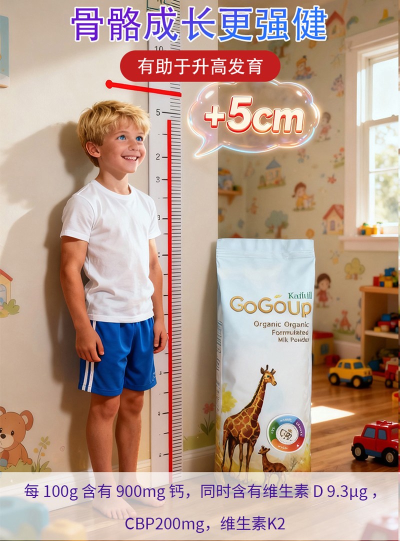 加賦有機一款通過有機認證的兒童MCT配方奶粉,更是“兒童成長精準營養(yǎng)方案”,3-15歲是兒童成長的黃金期,5維成長體系解鎖骨骼·健腦·護眼·免疫·吸收。