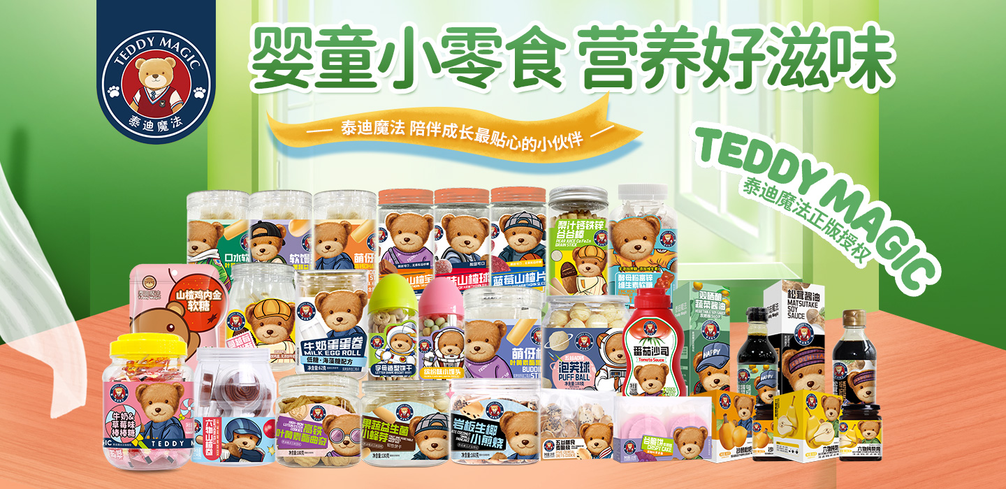 品牌名稱:泰迪魔法 主營產(chǎn)品:泰迪魔法餅干,泰迪魔法果泥,泰迪魔法山楂,泰迪魔法乳酸菌飲品 品牌特色:嚴(yán)格選材 美味健康