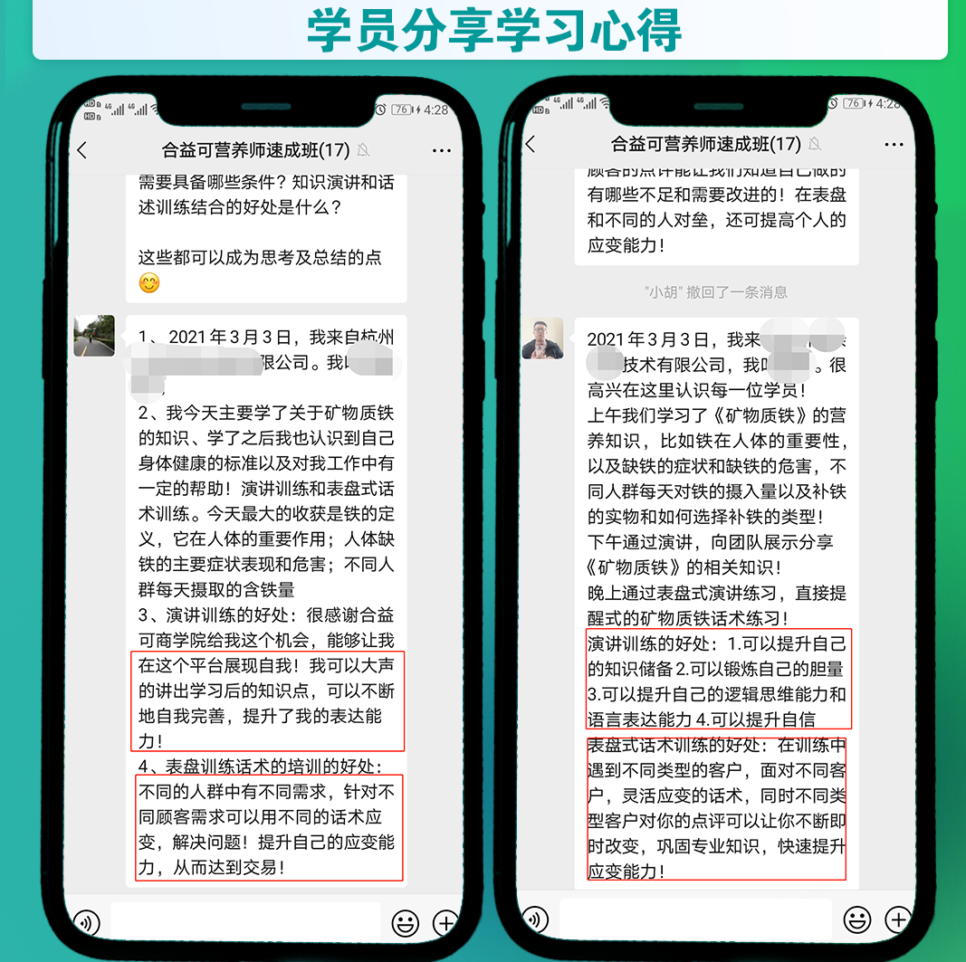 合益可商學(xué)院致力于幫助打造門店營養(yǎng)師,區(qū)域內(nèi)開設(shè)營養(yǎng)師培訓(xùn)班,分別根據(jù)經(jīng)銷商和終端門店的業(yè)務(wù)人員和營養(yǎng)師做對應(yīng)的專業(yè)培訓(xùn),幫助代理商打造專業(yè)的業(yè)務(wù)人員和營養(yǎng)師,更好的服務(wù)終端門店;幫助門店打造專業(yè)的店員或店長,更好的服務(wù)消費者。這類培訓(xùn)最大的特色就在于將學(xué)習(xí)的內(nèi)容與實戰(zhàn)結(jié)合,主張“多學(xué)不如多練”,通過將所學(xué)內(nèi)容演講訓(xùn)練和對講訓(xùn)練,真正做到學(xué)以致用,并且根據(jù)演練過程中多種角色演練,讓學(xué)員根據(jù)不同類型的客戶,靈活應(yīng)變話術(shù),快速提升應(yīng)變能力。
