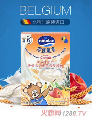 歐諾佳寶米粉,選材在比利時(shí),生產(chǎn)也在比利時(shí),由上海添慶網(wǎng)絡(luò)科技股份有限公司引入國內(nèi)市場。根據(jù)東方人群飲食特征來設(shè)計(jì)配方,雜糧谷物、水果牛奶谷物、蔬菜、混合谷物和原味大米粉,一整個(gè)谷物果蔬大集合,滿足輔食添加期要求的膳食多樣化。這些谷物果蔬均為食品級原料,無農(nóng)藥、無污染、非轉(zhuǎn)基因,生產(chǎn)過程無防腐劑、增稠劑、色素及人工香精添加,不含糖。