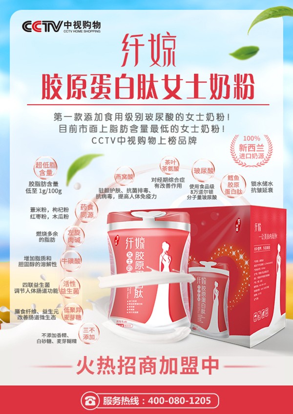 選奶粉,配方是關(guān)鍵。營(yíng)養(yǎng)成分添加不但要滿(mǎn)足此階段成長(zhǎng)需求,而且添加量一定要安全。纖婛膠原蛋白肽女士奶粉是一款滿(mǎn)足女性需求的配方,備受消費(fèi)者青睞。纖婛膠原蛋白肽女士奶粉你豈可錯(cuò)過(guò)!目前,該品正攜手火爆孕嬰童網(wǎng)面向全國(guó)誠(chéng)招代理經(jīng)銷(xiāo)商,終端上貨可要認(rèn)準(zhǔn)了哦!