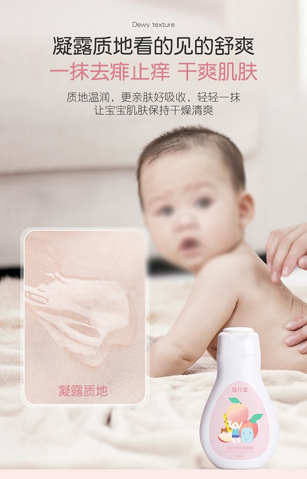 哪款寶寶護膚品在終端更好賣呢?哪個牌子的嬰童護膚品更受消費者信賴呢?火爆孕嬰童網小編今日給您推薦這款達兒文桃葉精華爽身露值得選擇。配方安全,成分放心,一上市便獲得消費者的關注,在了解并使用過后,媽媽圈反饋皆是好評,妥妥的母嬰店“人氣款”。