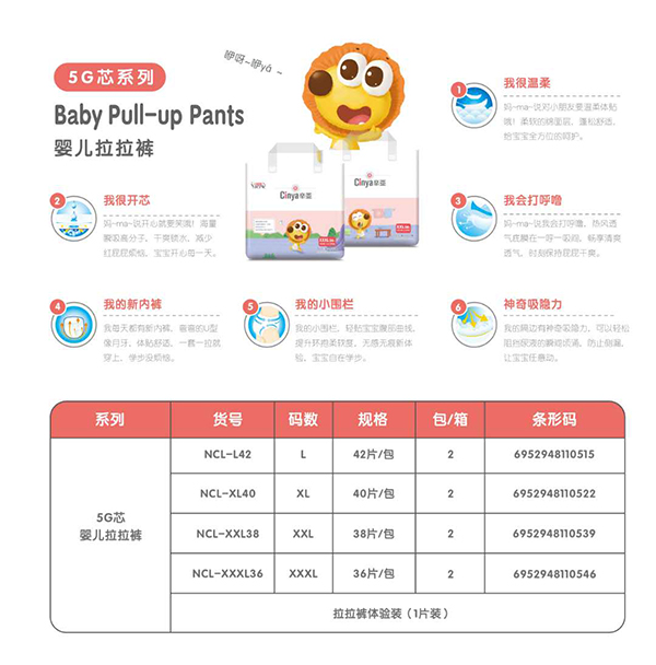 福建省南安市泉發(fā)紙品有限公司以市場需求為導(dǎo)向,不斷開發(fā)新產(chǎn)品,辛亞5G芯嬰兒拉拉褲是深受市場追捧的產(chǎn)品,巨大的價格優(yōu)勢,讓您無論采取何種營銷策略,均游刃有余!代理商如能根據(jù)實際情況靈活經(jīng)營,綜合運用各種營銷手段,短時間即可一炮打響,在當(dāng)?shù)叵破鹨还裳该偷目癯,以最快的速度獲得收益,創(chuàng)造新的財富傳奇!