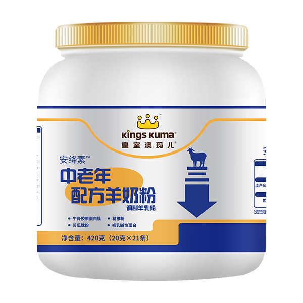 皇室澳瑪兒安絳素中老年配方羊奶粉,添加牛骨膠原蛋白肽、葛根粉、苦瓜肽粉、初乳堿性蛋白,親和羊乳吸收好,健康活力不畏高