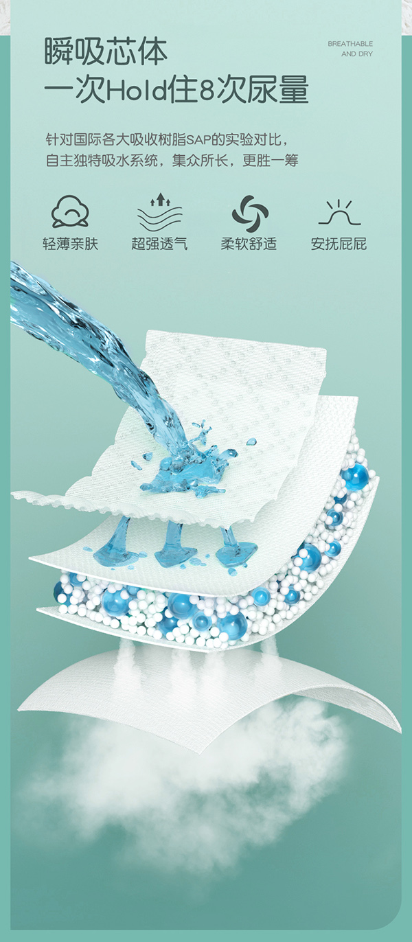 麥卡米卡暢氧超芯體學(xué)步褲,第4代“超芯”,更薄、更快、更干爽、更安全!獨(dú)創(chuàng)芯體U型槽,吸收更快,更大容量;超聲波壓合云朵凸點(diǎn)面層,減少皮膚接觸面,遠(yuǎn)離紅屁股;大環(huán)腰體貼腰圍,防漏不勒紅;立體雙層防漏,護(hù)圍拉伸自動(dòng)外翻設(shè)計(jì),有效防止側(cè)漏;0.1cm超薄芯,一片尿褲反鎖整夜尿量;臺(tái)灣進(jìn)口面層,立體打孔,輕松吸收,迅速把干;醫(yī)護(hù)級(jí)紙尿褲,多國檢測(cè)認(rèn)證,安全放心。