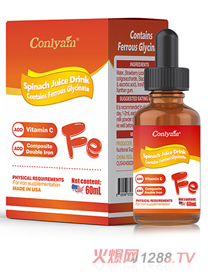 康萊姆F26復合飲品(高鐵),每毫升含甘氨酸亞鐵5mg,含量高,良好的生物穩(wěn)定性,無腸道刺激反應,分子小而穩(wěn)定,富含天然免疫因子,補鐵免疫雙管齊下,特別添加草莓汁和維生素C,口感好,促進鐵吸收與利用。