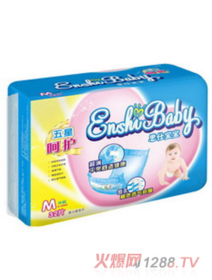 bao--bao紙尿褲的選擇至關(guān)重要,如果選購(gòu)不當(dāng)?shù)脑,不僅使孩子哭鬧不止,而且還會(huì)嚴(yán)重?fù)p害bao--bao的肌膚健康,因此很多媽媽在選購(gòu)的時(shí)候都十分慎重,恩仕bao--bao紙尿褲透氣性好、超薄舒適、瞬間吸收尿液,為bao--bao帶來(lái)全方位的呵護(hù)。