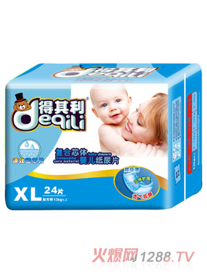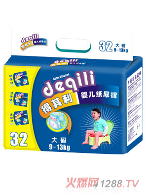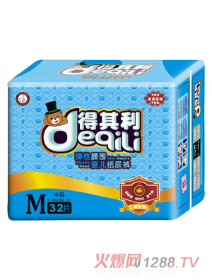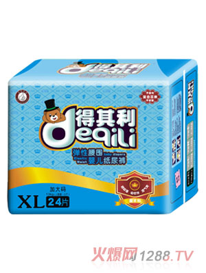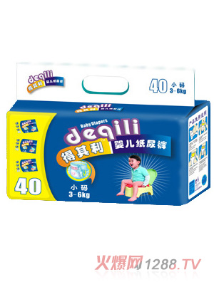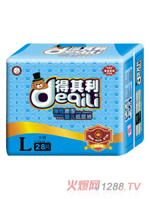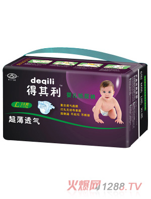 得其利嬰兒紙尿褲是廣州粵豐飛躍實業(yè)有限公司旗下主打品牌之一,是一款專業(yè)的防尿產(chǎn)品,經(jīng)過多年的市場調(diào)研及研究,有著全新神奇吸水層,左右貼,柔軟透氣外層,蘆薈精華護(hù)膚層,可愛的彩圖設(shè)計五大特點。