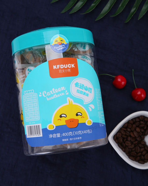 功夫小鴨卡通山楂桶裝產(chǎn)品展示
