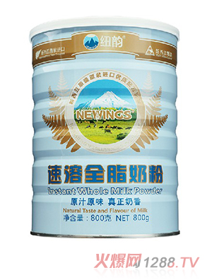 紐韻即溶全脂奶粉由純凈和安全的新西蘭進(jìn)口,確保品質(zhì)安全。本產(chǎn)品由新西蘭天然放養(yǎng)的健康奶牛所生產(chǎn)的新鮮牛奶經(jīng)低溫噴霧干燥處理而成,完全保留了新西蘭天然牛奶的原始風(fēng)味和營(yíng)養(yǎng)成分,含有豐富的蛋白質(zhì)和碳水化合物,可為3歲以上兒童和成年人以及孕產(chǎn)婦提供豐富和均衡的營(yíng)養(yǎng),適合人們?nèi)粘o嬘。產(chǎn)品不含蔗糖,飲用本品不會(huì)上火和蛀牙。產(chǎn)品富含容易被人體吸收的鈣離子,能為各個(gè)年齡層提供所需要的鈣質(zhì)補(bǔ)充。
