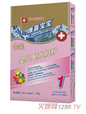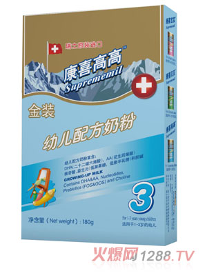 Suprememil系列配方奶粉(康喜bao--baoSuprememil 1、康喜貝貝Suprememil 2、康喜高高Suprememil 3),是由瑞士赫爾達夫營養(yǎng)食品有限公司生產,由欣特峽商貿(上海)有限公司總經(jīng)銷。欣特峽商貿(上海)有限公司在食品、保健品、藥品、醫(yī)療儀器等領域提供采購、品牌營銷、物流、經(jīng)銷等一體化服務。